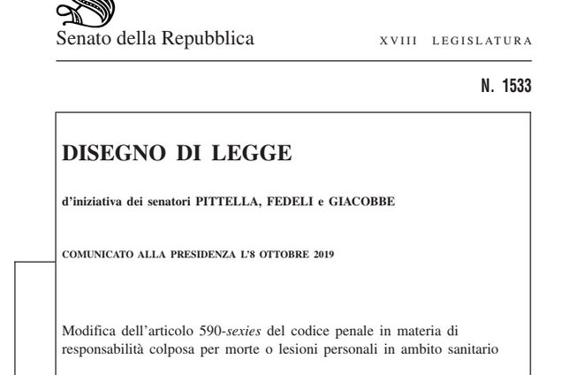 Disegno di legge d’iniziativa dei senatori PITTELLA, FEDELI e GIACOBBE comunicato alla Presidenza l’8 ottobre 2019. Modifica dell’articolo 590-sexies del codice penale in materia di responsabilità colposa per morte o…