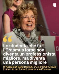 Ho tardato qualche giorno per rendere omaggio a Sofia Corradi mamma dei programmi Erasmus, recentemente scomparsa, l’ho fatto perché non mi volevo limitare ad un pur doveroso e sentito omaggio ad una grande donna, coraggiosa e visionaria.